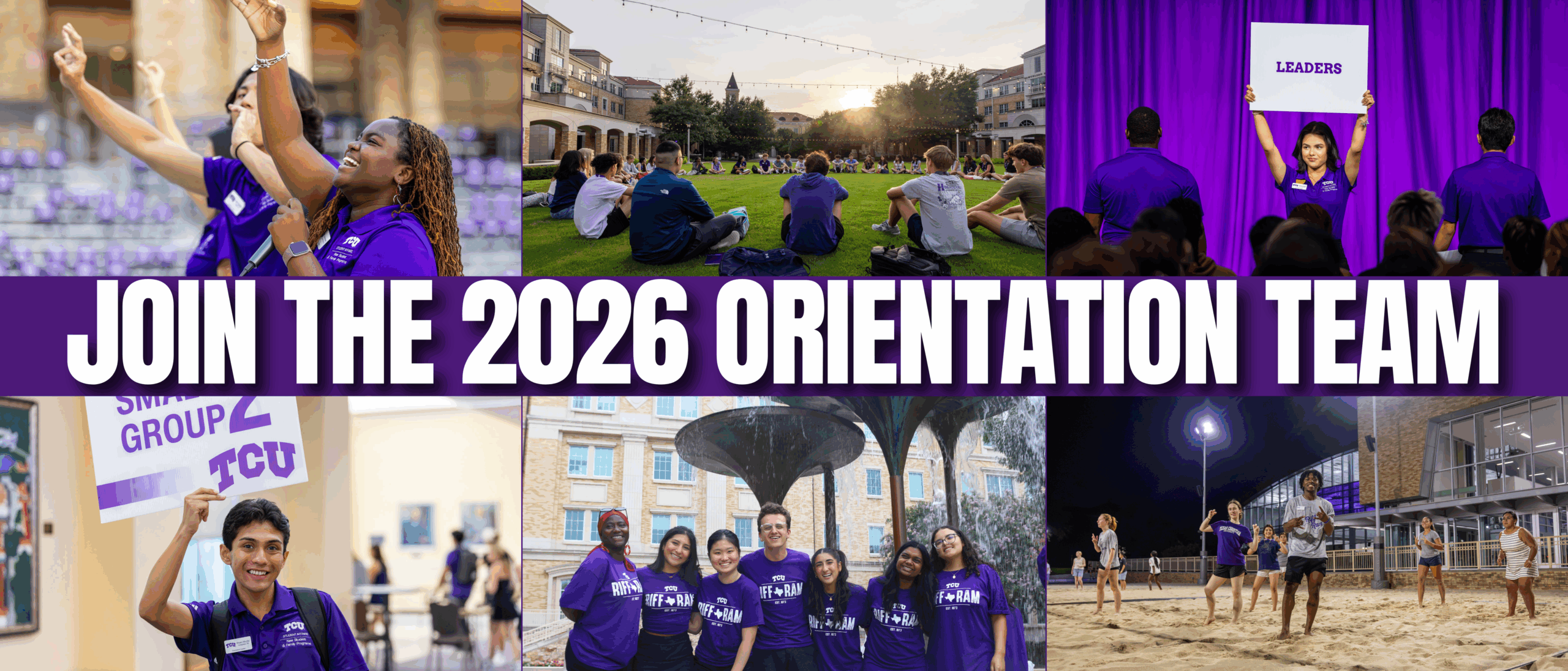 New Student & Family Programs is looking for enthusiastic, energetic, and compassionate students to serve as Orientation Leaders during the summer months. As an Orientation Leader, you will help welcome new Horned Frogs and their supporters to campus, guiding them through the excitement of beginning their TCU journey. Orientation Leaders play a vital role in shaping each student’s transition to TCU and creating a community where every Horned Frog feels like they belong.